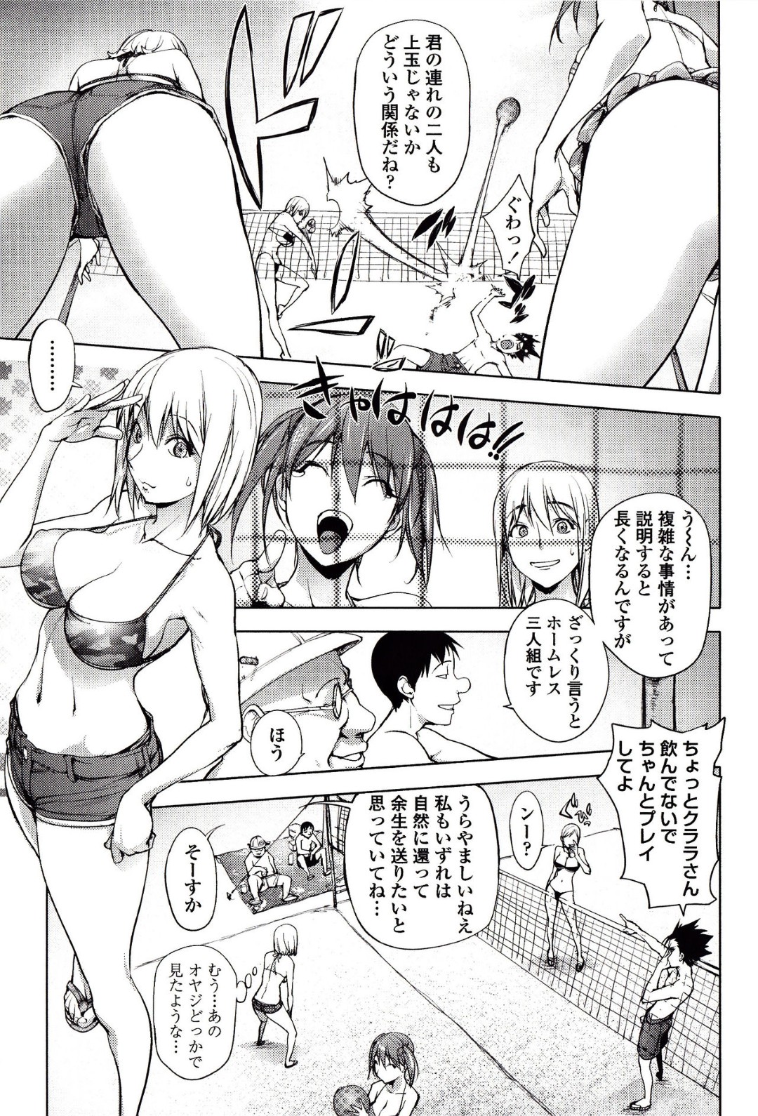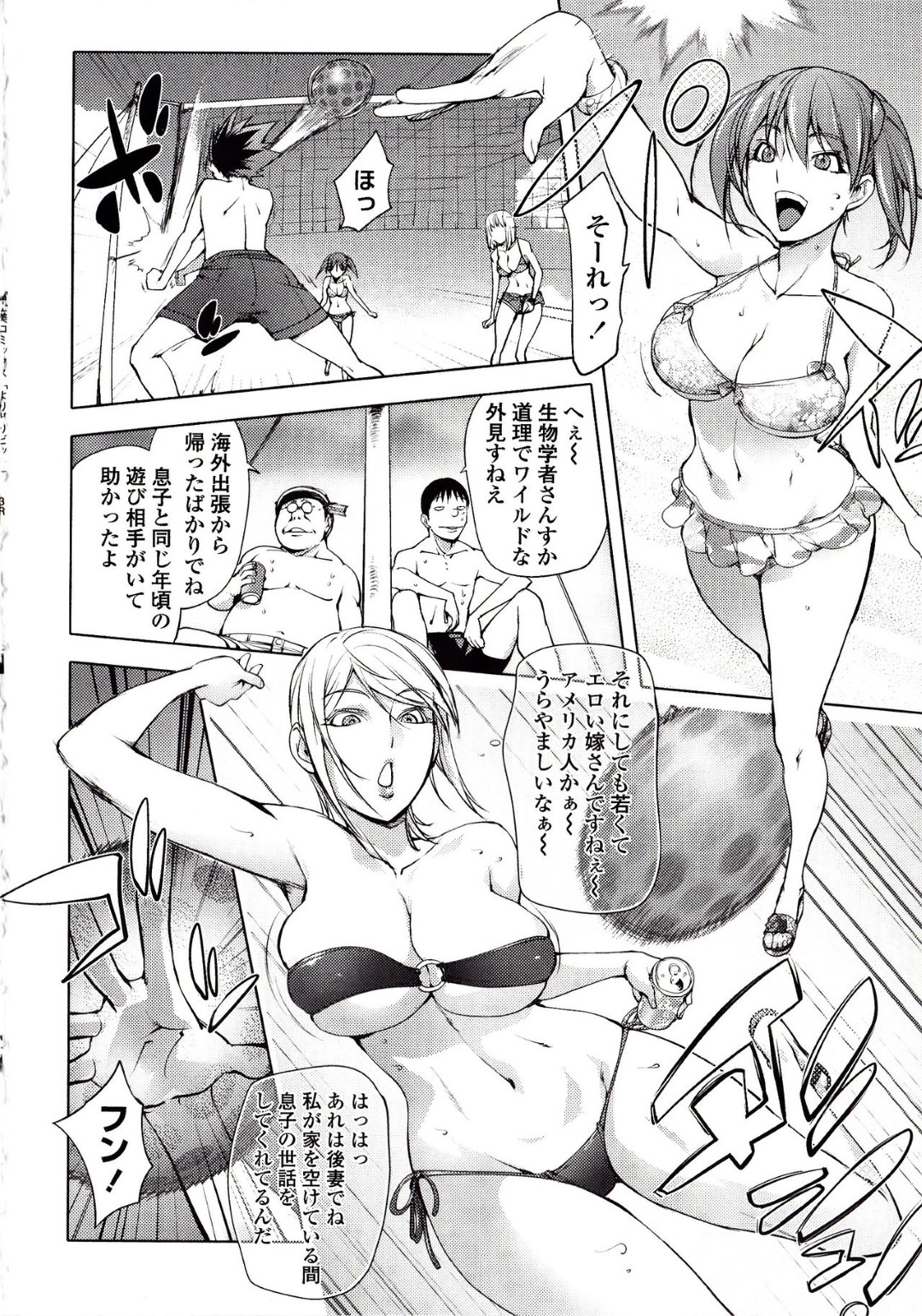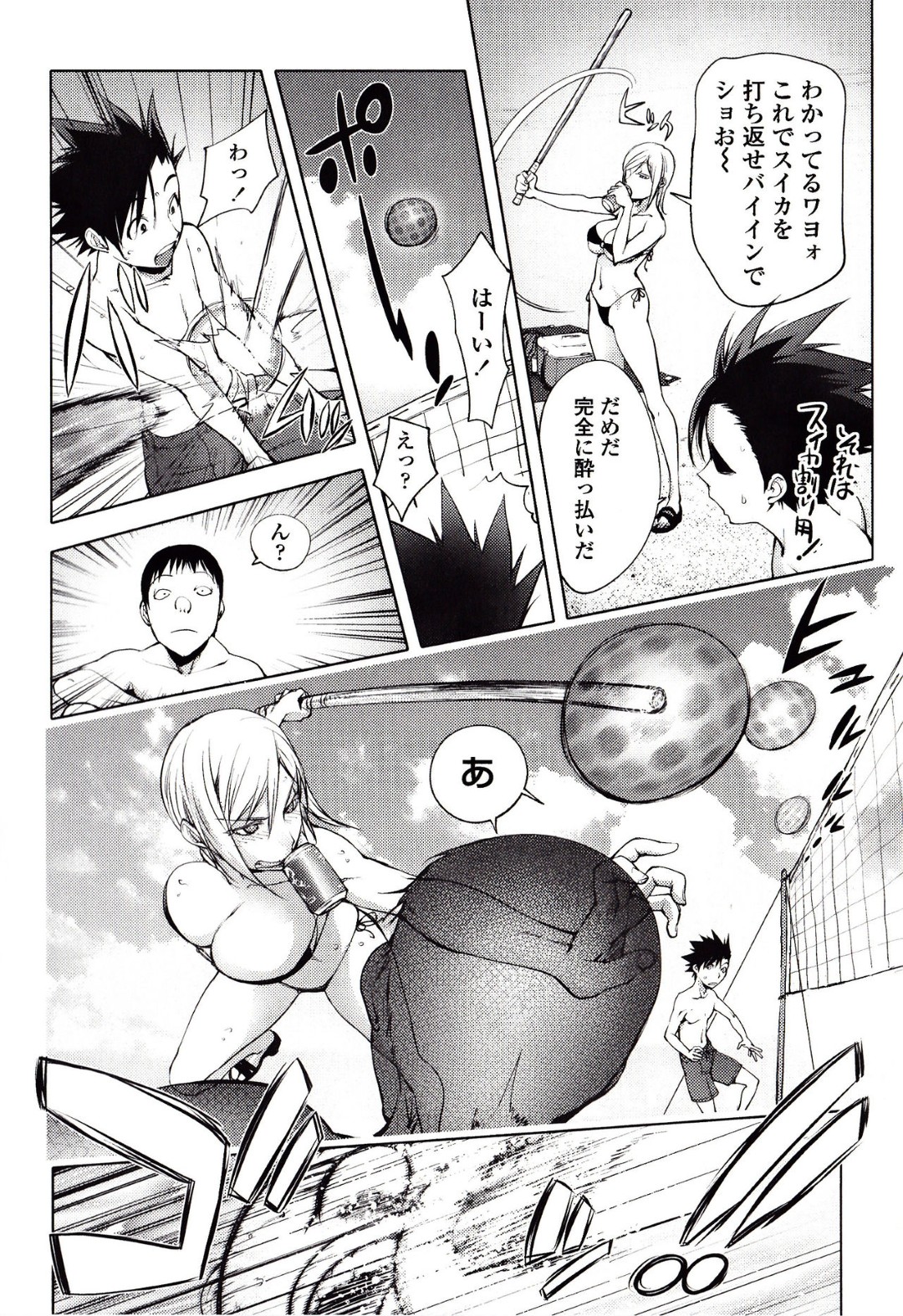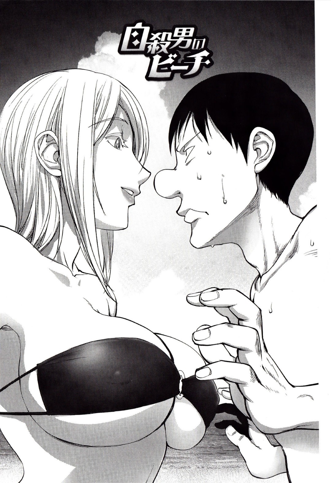【エロ漫画】気絶した男を襲っちゃうビッチなエロ水着の美少女…逆レイプに騎乗位の中出しセックスでイチャラブしちゃう!【蒟吉人:自殺男のビーチ】