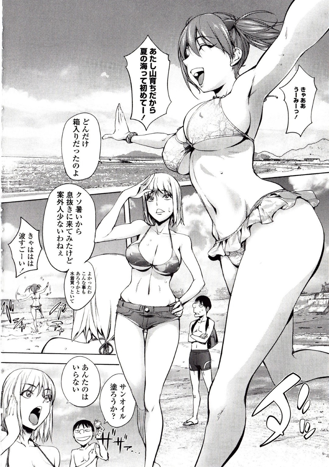 • 【エロ漫画】気絶した男を襲っちゃうビッチなエロ水着の美少女…逆レイプに騎乗位の中出しセックスでイチャラブしちゃう!【蒟吉人:自殺男のビーチ】