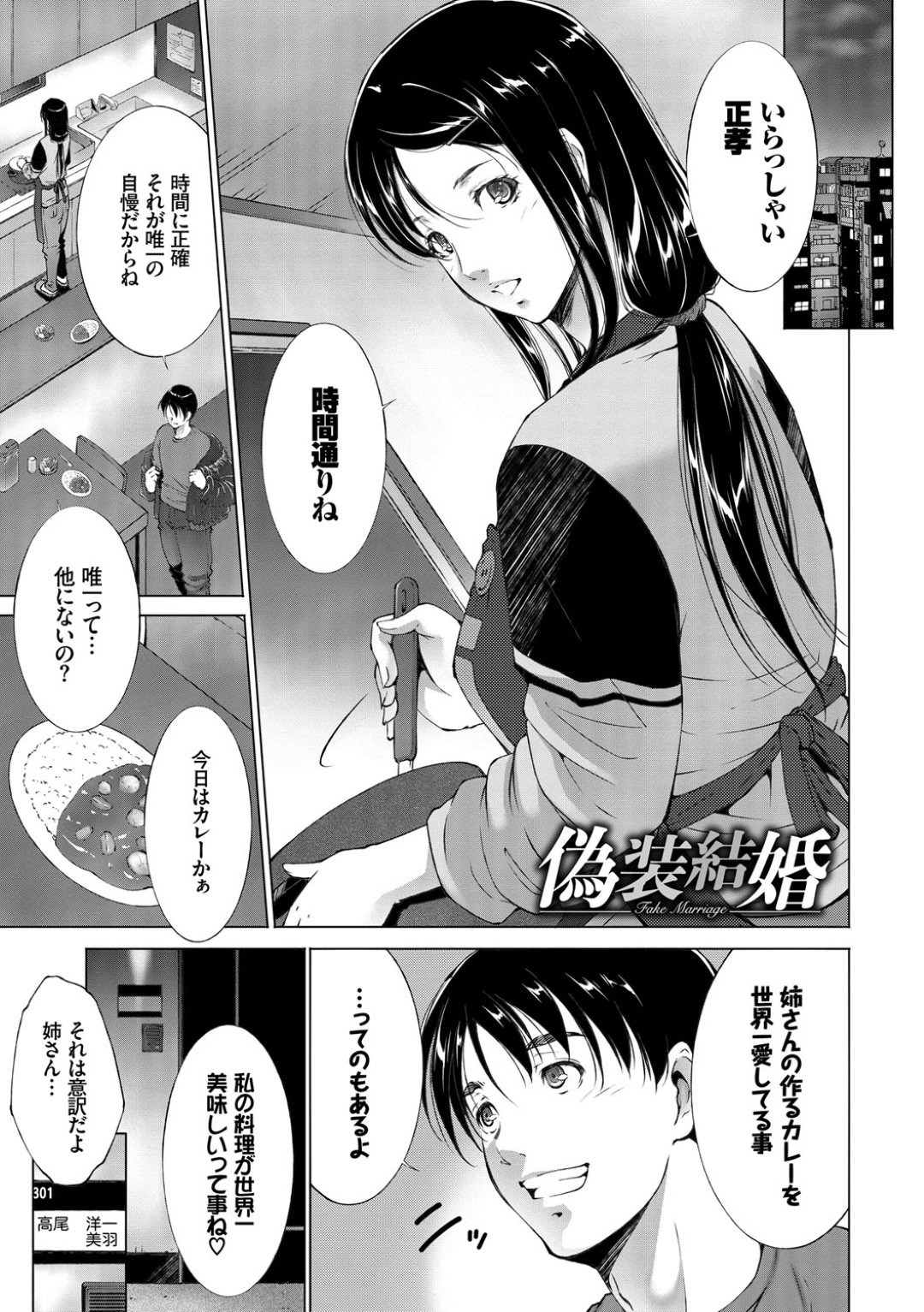 • 【エロ漫画】偽装結婚した裏で弟と愛し合う新婚妻が夫とのHではこっそり避妊しアリバイを作り出張中に近親相姦で子作りセックスしちゃう【東磨樹:偽造結婚】